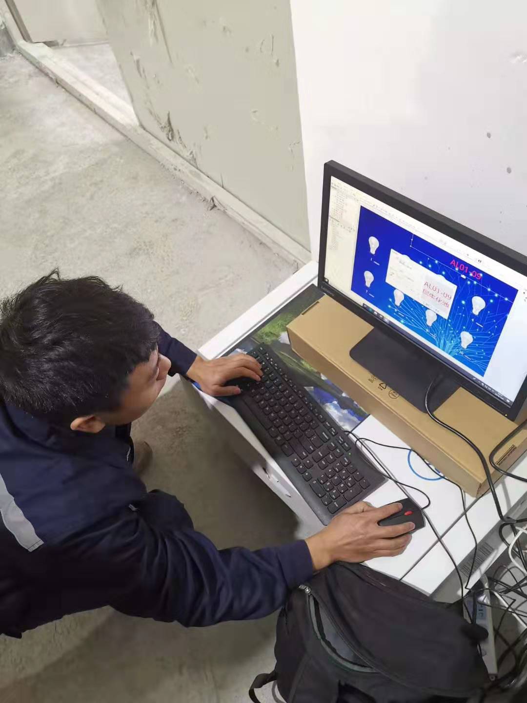 VSU智能照明控制系統(tǒng)可實(shí)現(xiàn)對(duì)區(qū)域內(nèi)所有燈具開(kāi)閉,調(diào)光調(diào)色,定時(shí)控制,空調(diào)高中低三檔、電動(dòng)門、電動(dòng)窗簾開(kāi)閉,可帶人感、光感,實(shí)現(xiàn)全自動(dòng)化??刂品绞娇蛇x擇手機(jī)、電腦、觸摸屏、面板。根據(jù)客戶需求,VSU為安康江南再生水廠該項(xiàng)目設(shè)計(jì)的控制方式為電腦+觸摸屏。下圖為現(xiàn)場(chǎng)測(cè)試情況: