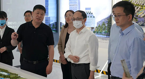 吳能武一行人首先參觀了上海灣區(qū)科創(chuàng)中心展廳,灣區(qū)科創(chuàng)公司負(fù)責(zé)人就科創(chuàng)中心的總體規(guī)劃、未來城市設(shè)計以及院校合作等板塊進(jìn)行了詳細(xì)介紹。