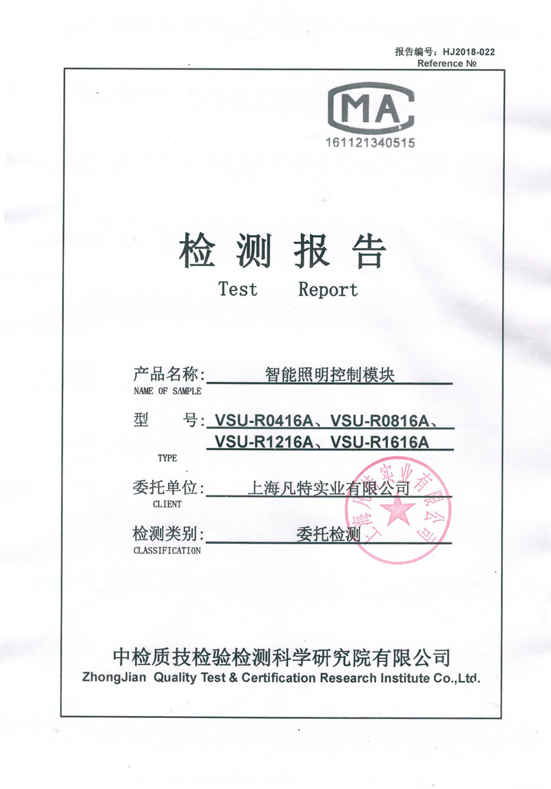 VSU智能照明控制模塊檢測報告1