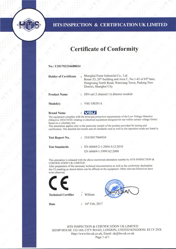 VSU智能照明有多項自主知識產品證書,所有產品都經過國際CE認證,符合國際電工標準。